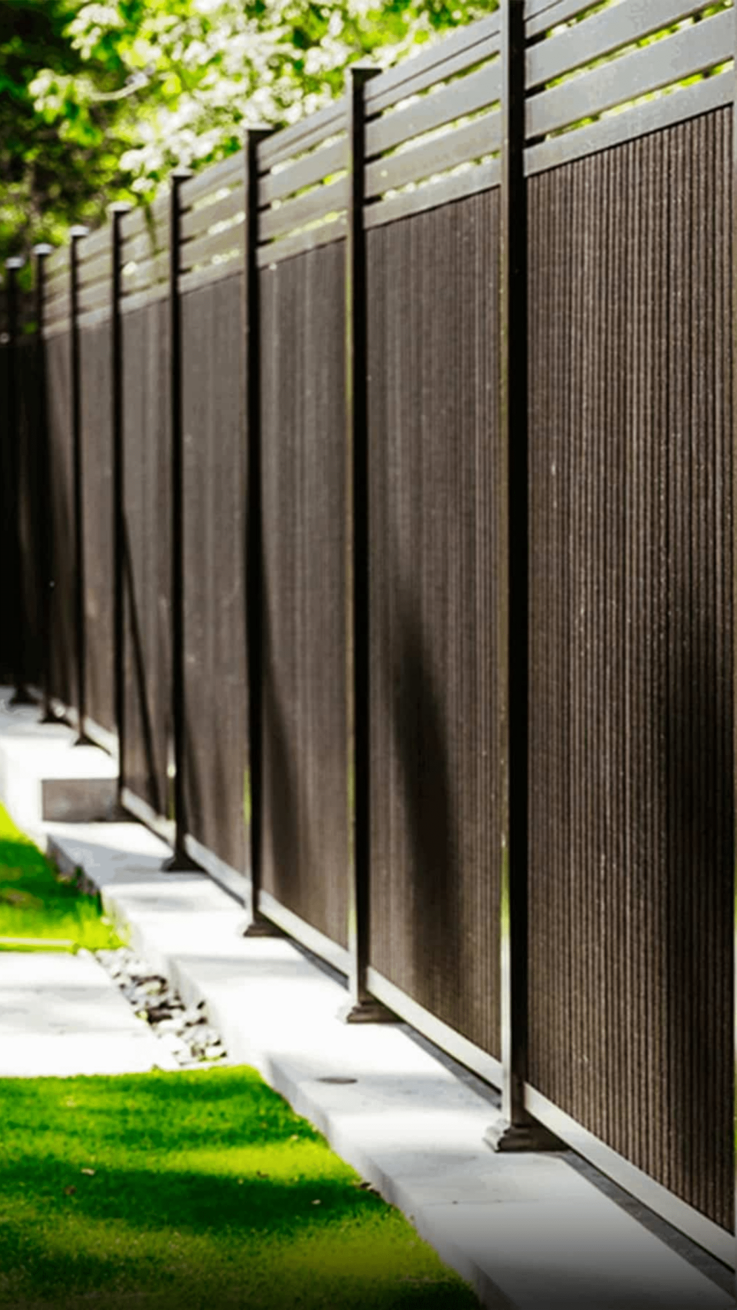 Nos clôtures en composites sont offertes dans une large gamme de finis naturels et contemporains pour s’adapter à tout type d’aménagement extérieur.